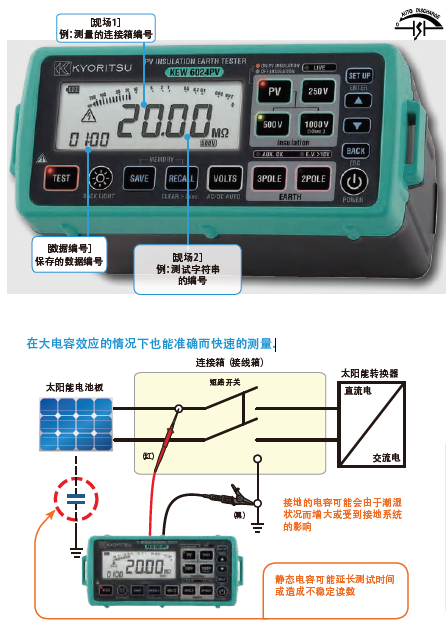 日本共立 KEW 6024PV光伏絕緣接地測試儀 產品特點: