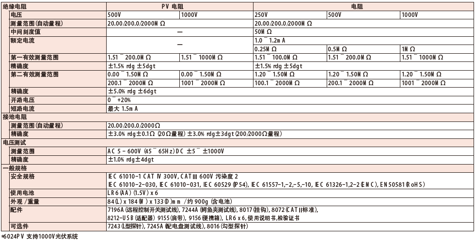 日本共立 KEW 6024PV光伏絕緣接地測試儀 相關參數: