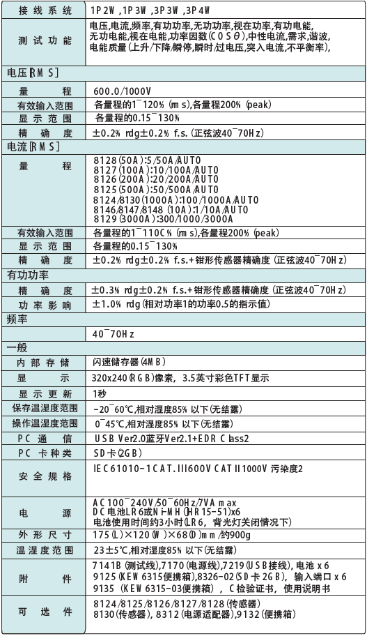 日本共立 KEW 6315電能質量分析儀 相關參數: