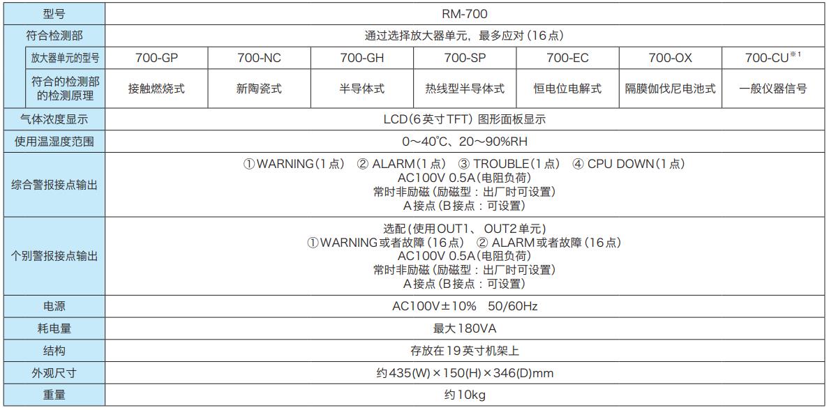 ※1 還可輸入氣體檢測器以外的一般計測信號。(放大器單元為700-CU) <注記>泵電源另行需要供電電源和端子臺。