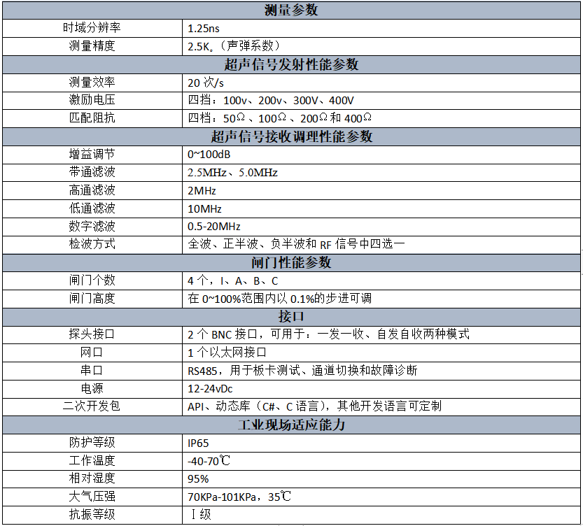 超聲應力測量模塊 相關參數: