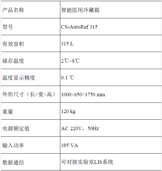 中瑞互信 CS-AutoRef315智能醫用冷藏箱 相關參數:
