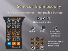 Sonocon B是高度用戶友好的。 它的界面理念可以說是“不瀏覽菜單,只需按下按鈕!”。 所有最常用的功能都放在其鍵盤上,從而使它們可以通過一次或幾次按鍵操作就可以訪問。 這樣可使設置和評估過程快幾倍。 多種內置的自動校準程序允許使用標準或測試對象上的直光束,角光束和瑞利波探頭進行快速,輕松的校準。