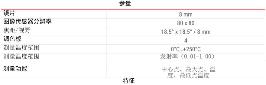 波蘭SONEL(索耐) KT-80熱像儀 相關參數(shù):