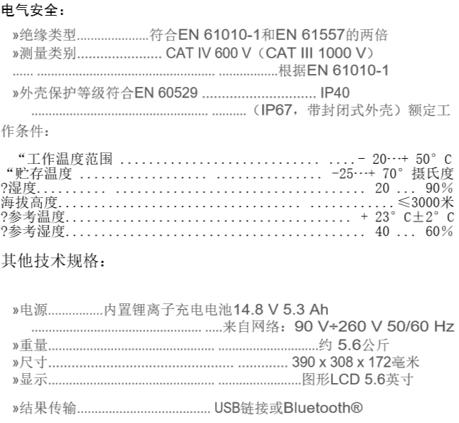 ?可存儲多達10,000種每種測量類型的結果的存儲器,包括對測量點,對象,客戶名稱,