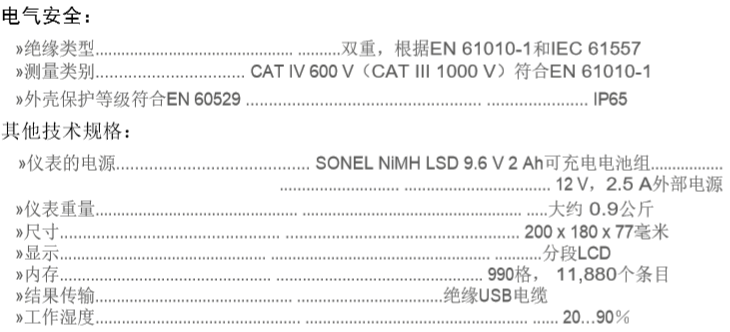 波蘭SONEL(索耐) MIC-5001 絕緣電阻表 相關參數: