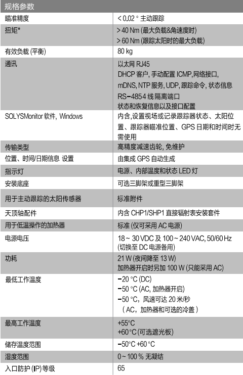 荷蘭Kipp&Zone SOLYS Gear Drive太陽跟蹤器 產品參數: