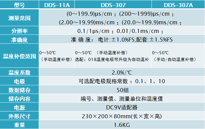 齊威 DDS-307A/307/11A微機型電導率儀 產品參數: