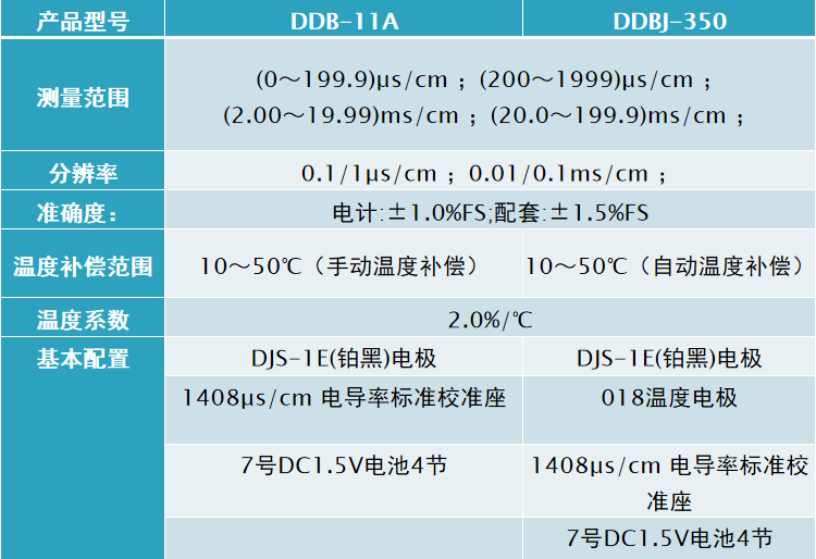齊威 DDB-11A/DDBJ-350微機型便攜式電導率儀 產品參數: