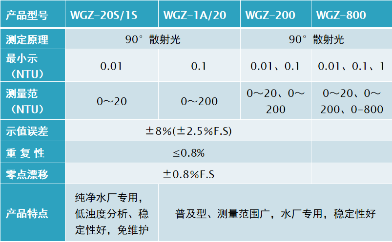 齊威 WGZ?系列數顯臺式濁度儀 產品參數: