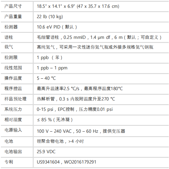 NovaTest P300-L 小型氣相色譜 技術參數: