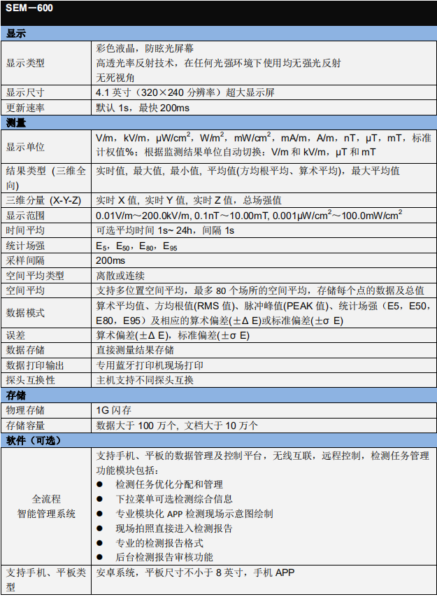 SEM-600 電磁輻射分析儀 技術參數: