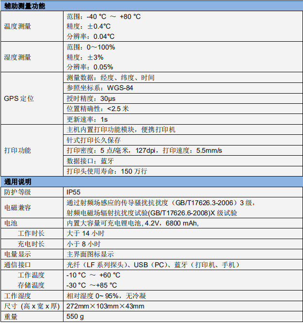 輔助信息:GPS 定位及授時、環境溫度、相對濕度;