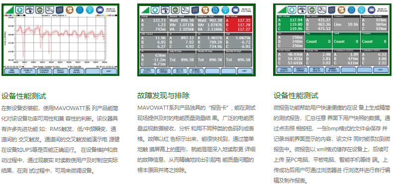 我們在MAVOWATT系列產品的開發過程中,非常重視安全的操作,多種通信接口選項,眾多的記錄和報告生成功能以及更高的采樣率和更高的測量分辨率。