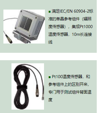■ 符合IEC/EN60904-2標(biāo)準(zhǔn)的參考組件,同時(shí)集成PT1000溫度傳感器