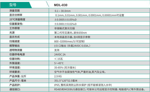 德國MIKROMETRY 激光測徑儀MDL-030技術參數: