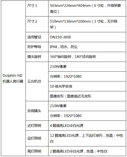 管網檢測機器人DOLPHIN-M2 產品參數:
