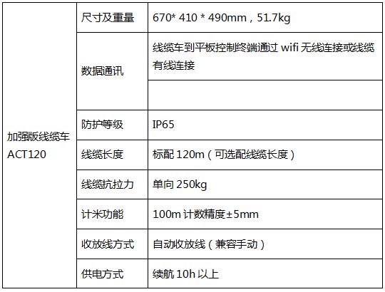 - 無線連接:平板控制終端與線纜車WIFI無線連接,6m有效距離,視頻無延時,不卡頓
