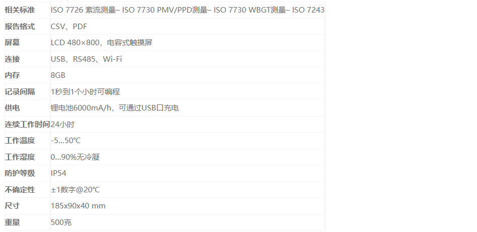 PMV/PPD-WBGT和TU測(cè)量,符合ISO 7726,ISO 7730和ISO 7243標(biāo)準(zhǔn)要求
