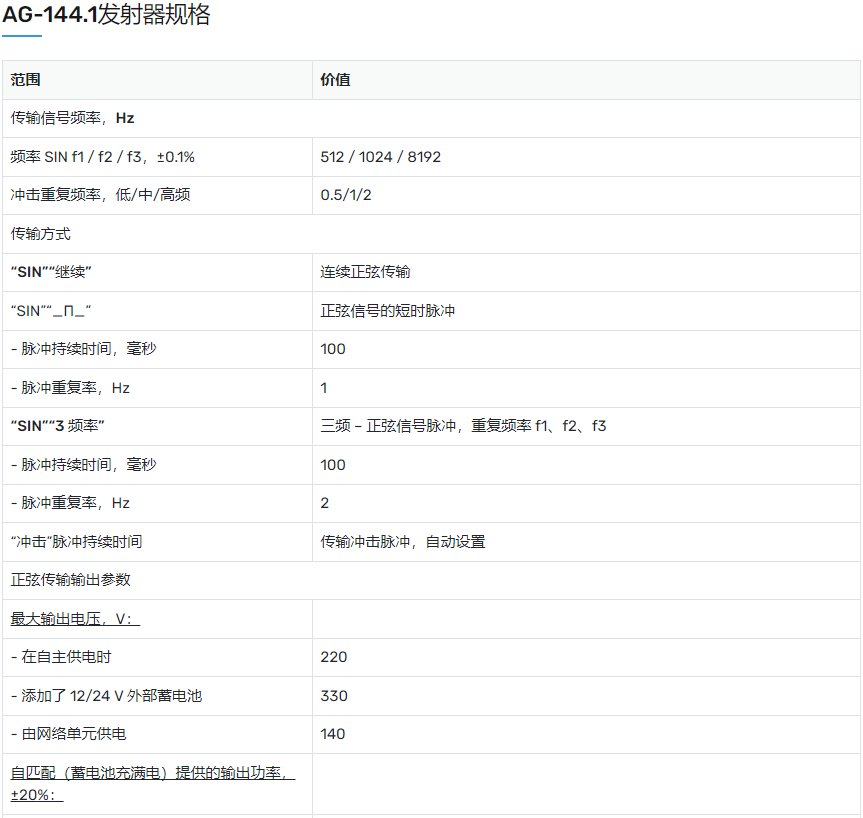俄羅斯TECHNO-AC品牌非金屬管線探測(cè)儀Success TPT-522N 發(fā)射機(jī)AG-144.1 產(chǎn)品參數(shù):