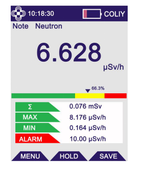 清晰明了地同時顯示中子和γ射線的數據,用戶可直觀地觀察兩種射線以兩種不同的單位(cps,μSv/h)顯示。
