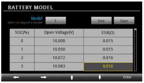 請參閱電池型號的各重要參數,其中包括開路電壓、內阻、剩余電量和充電狀態。
