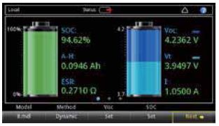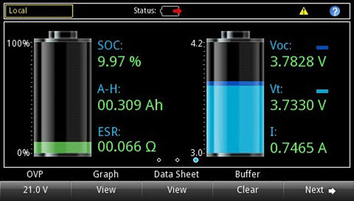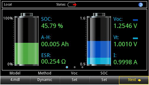 • 顯示被仿真電池的 SOC、Voc 和 Vt 的實時變化