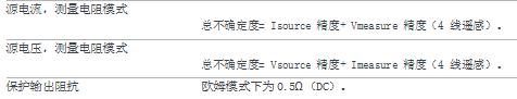 4. 對于灌電流模式,1μA至 100 mA?的量程精度為±(0.15%+失調×4)。對于 1A?范圍,精度為±(1.5%+偏移×8)。