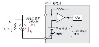 當測量來自諸如光電二極管之類的設備的暗電流(圖 1)時, 電流表讀取兩個不同電流之和。第一個電流是檢測器產生的暗 電流(ID),沒有光照射到設備上(換句話說,就是感興趣的信號);第二個是電流表端子上出現的電壓負擔(V負擔)產生的泄漏電流(IL)。在反饋電流表中,主要的“電壓負擔”是放大器的失調電壓。該泄漏電流表示誤差電流。不使用抵消技 術,IL= V?負擔/?RL。圖 2?說明了 6514?型調整了 CAL V 抵銷以將V?負擔抵消到幾微伏的電壓噪聲水平內,因此測得的電流僅為真正的暗電流(ID)的光電二極管。以類似的方式,也可以抵消偏置電流。早期的靜電計使用內部數字校正技術,其中仍然存在電壓負擔,因此測得的暗電流包括誤差項 IL= V 負擔/ RL。