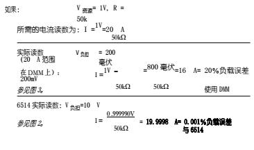下面的示例將DMM?的電壓負擔誤差與 6514?的誤差進行了比較。