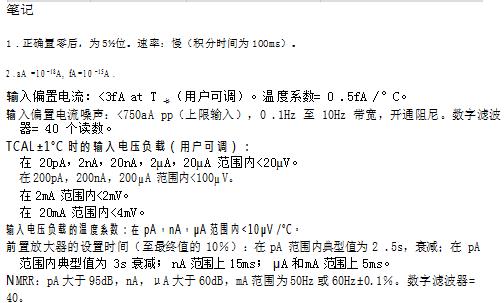 預放大器設置時間(在<100pF 輸入電容時達到最終讀數的 10%):2k ?至 200k :2ms;20M 200M :90ms。2G 至 200G :1s。