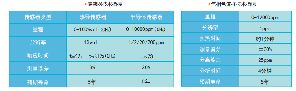 半導(dǎo)體傳感器:PPM濃度測(cè)量;熱導(dǎo)傳感器:用于Vol濃度測(cè)量和配比檢測(cè);