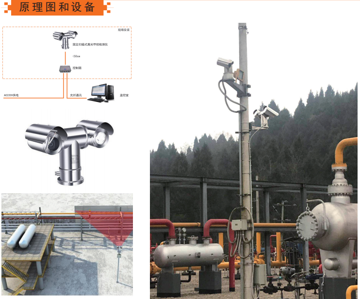 ◆ 監(jiān)測范圍大:一臺設(shè)備可實現(xiàn)大范圍的區(qū)域泄漏監(jiān)測。