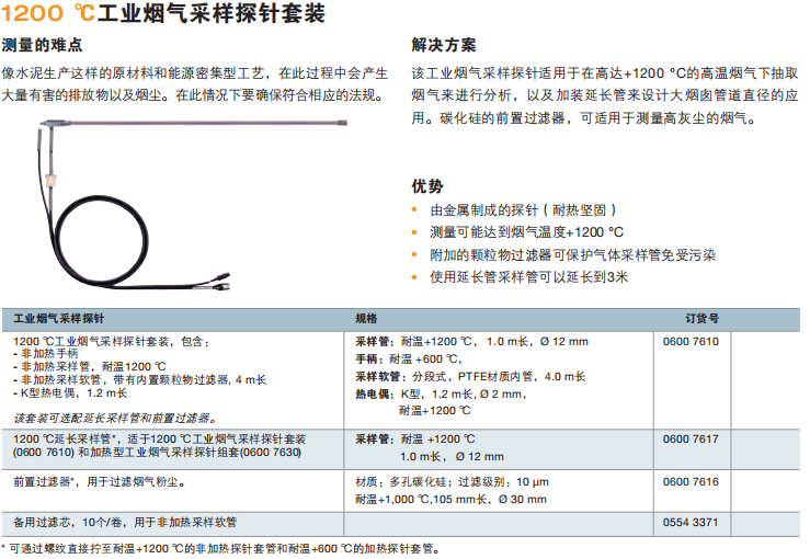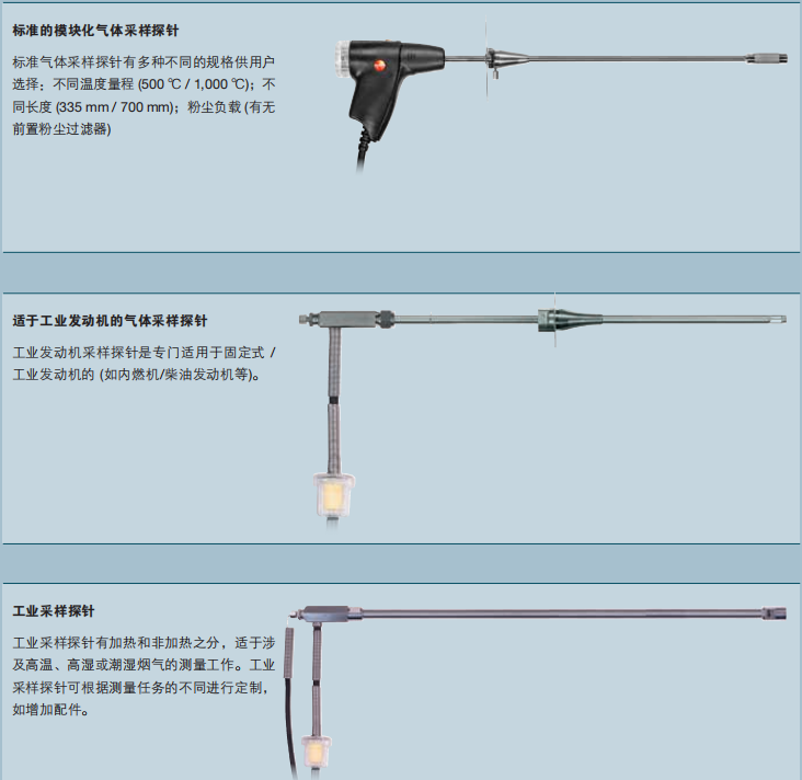 針對(duì)燃燒設(shè)備的多種用途:用于產(chǎn)生熱能、發(fā)電、水蒸汽、熱水,或者用于某些材料的生產(chǎn)以及表面處理,用于焚燒廢棄物和廢料。這意味著需要采用不同的氣體采樣探針來(lái)進(jìn)行不同應(yīng)用中的測(cè)量,以及使用不同燃料的工況和產(chǎn)生不同污染物的工況測(cè)量。