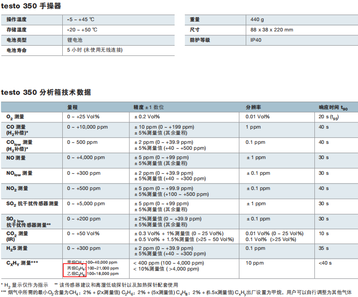 德國(guó)德圖 testo 350 煙氣分析儀藍(lán)色新版本 技術(shù)參數(shù):