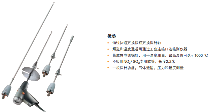 熱電偶可以并行測(cè)量煙氣中的溫度,并包含防熱手柄,可防止金屬手柄上的任何燃燒。