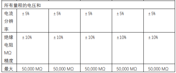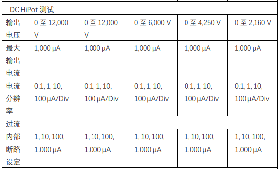 過流內部斷電停止測試等級為 1,000/100/10/1 μA。MΩ 測試的最大讀數= 50,000