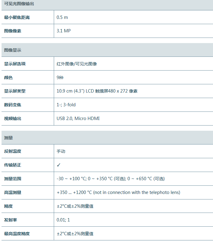 德國德圖 testo 890 高端紅外熱像儀 技術參數: