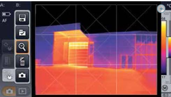 在建筑熱成像中,紅外技術特別適用于快速有效地分析建筑物供暖或空調系統中的能量損失。由于其高分辨率,Testo 熱成像儀可提供隔熱缺陷和熱橋的詳細圖像。此外,它們非常適用于記錄門窗、卷簾外殼、散熱器壁龕、屋頂結構或整個建筑外墻的能量損失。 Testo 熱像儀是全面診斷和維護用途的理想測量工具,無論何時都可提供能效咨詢檢測。