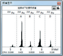 該能譜圖也用于檢查有問(wèn)題的RAD7,是否出現(xiàn)一些病態(tài)能譜,例如是峰值出現(xiàn)在不正確的位置上,或者在窗口A、B、C及D里面或外面出現(xiàn)一些假的峰值,用戶(hù)可以在軟件中觀察有否這種病態(tài)能譜的出現(xiàn)。詳細(xì)數(shù)據(jù)內(nèi)容只可以通過(guò)打印機(jī)打印出來(lái)。