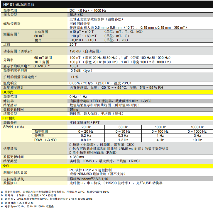 德國Narda HP-01 靜態和時變磁場測量儀 相關參數: