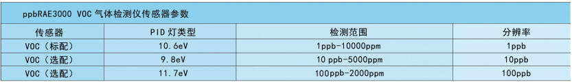| 傳感器配置 | 標(biāo)配10.6eV(可選9.8/11.7eV)紫外燈的PID傳感器 |