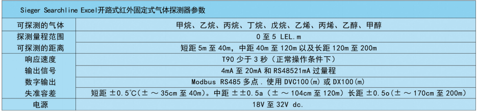 霍尼韋爾 Searchline Excel 開路式紅外氣體探測器 相關參數: