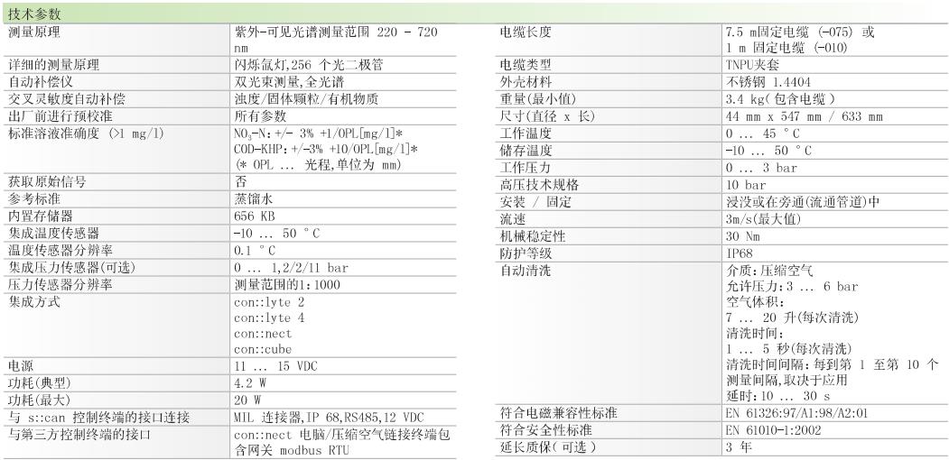 奧地利 是能nitro::lyser多參數光譜探頭產品技術參數: