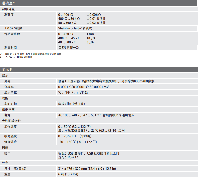 對于高準確度的溫度測量或者溫度校準的需求,CTR3000 測溫儀為用戶提供了完整的測量和控制界面。它支持多種溫度計類型,包括25Ω標準鉑電阻溫度計 (SPRT) 、100Ω鉑電阻溫度計 (PRT) 、熱敏電阻、熱電偶。CTR3000 是針對實驗室和工業溫度測量及校準應用而設計的一款高準確度測溫儀。