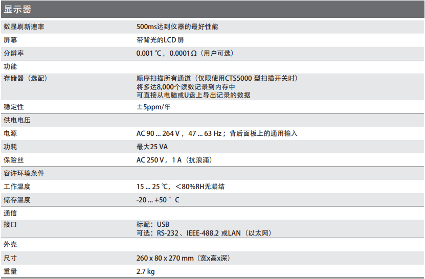 *準確度:0.01 ℃和0.005 ℃(可選)