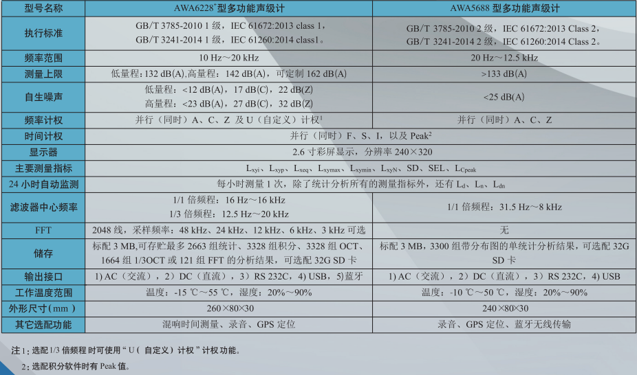 杭州愛華 AWA6228+/AWA5688型多功能聲級計 相關(guān)參數(shù):