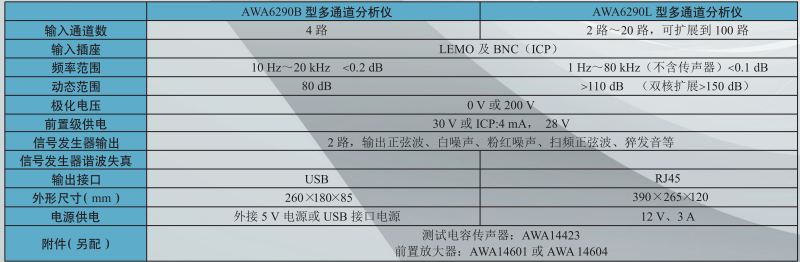 杭州愛華 AWA6290L/AWA6290B型多通道信號分析儀 相關參數: