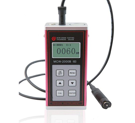 MCW-2000B型(渦流)涂層測厚儀是高新技術的結晶,它采用單片機技術,精度高、數字顯示、示值穩定、功耗低、操作簡單方便、無校正旋鈕、單探頭全量程測量、體積小、重量輕;且具有存儲、讀出、低電壓指示、其性能達到當代國際同類儀器的先進水平。