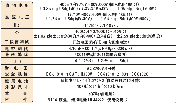 日本共立 KEW 1018H卡式萬用表 相關參數: